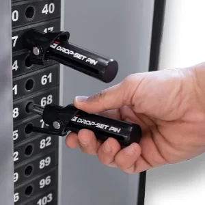 - Estos pasadores para máquinas de gimnasio se liberan automáticamente, permitiéndote bajar de peso y continuar con tu serie de manera fluida y sin interrupciones.