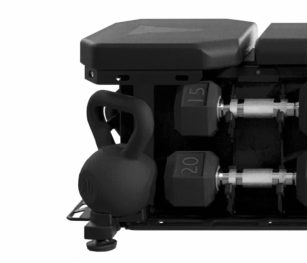 • Compacto y versátil, este banco multifuncional con almacenamiento integrado tiene todo lo necesario para trabajar cada grupo muscular.