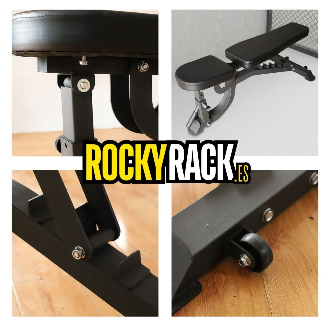 ![Banco Gimnasio BENCHPROv1 - 9 Posiciones [Hasta 250kg] - Imagen 3](https://rockyrack.es/wp-content/uploads/2023/05/Collage-banco-reclinable.webp)