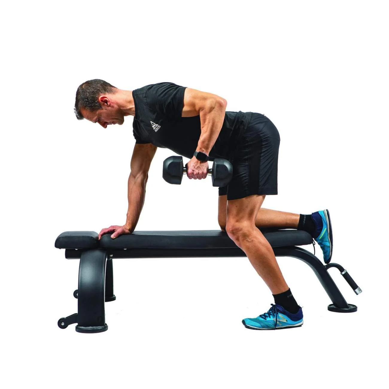 - Un banco básico para tus entrenamientos en casa o gimnasio, fácil de mover o guardar.