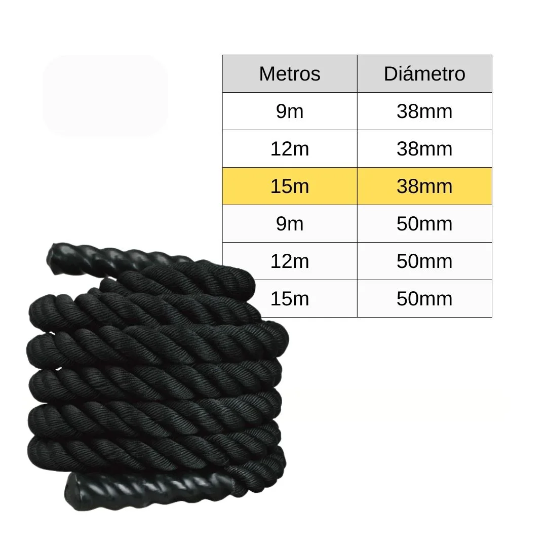 - Battle rope de 15m de longitud y 38mm de diámetro.