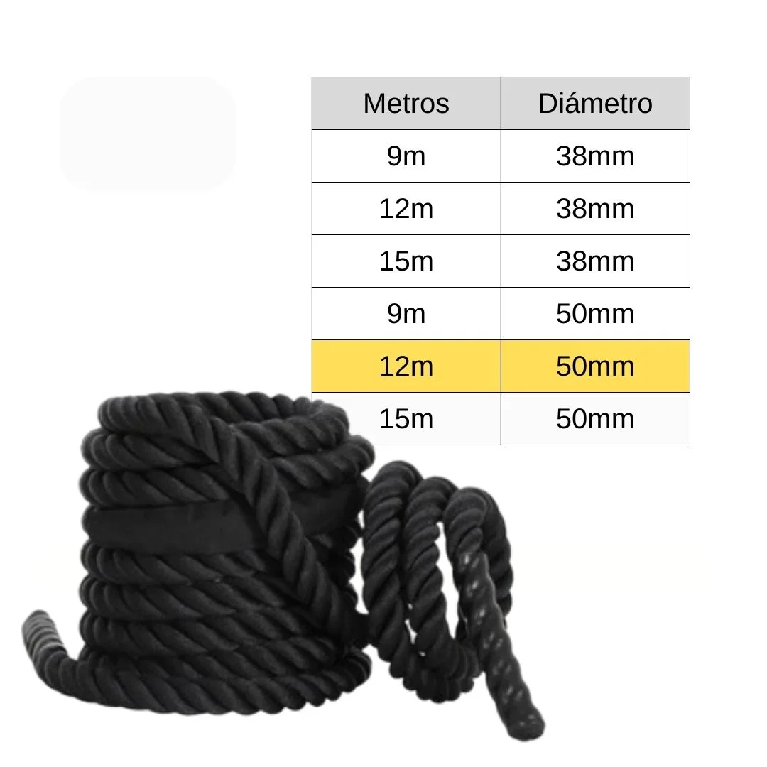 - Battle rope de 12m de longitud y 50mm de diámetro.