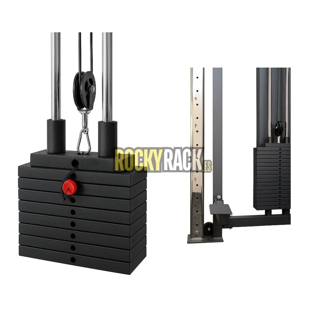 - 2 Torres de polea con 90kg en placas cada una (180kg de placas en total)