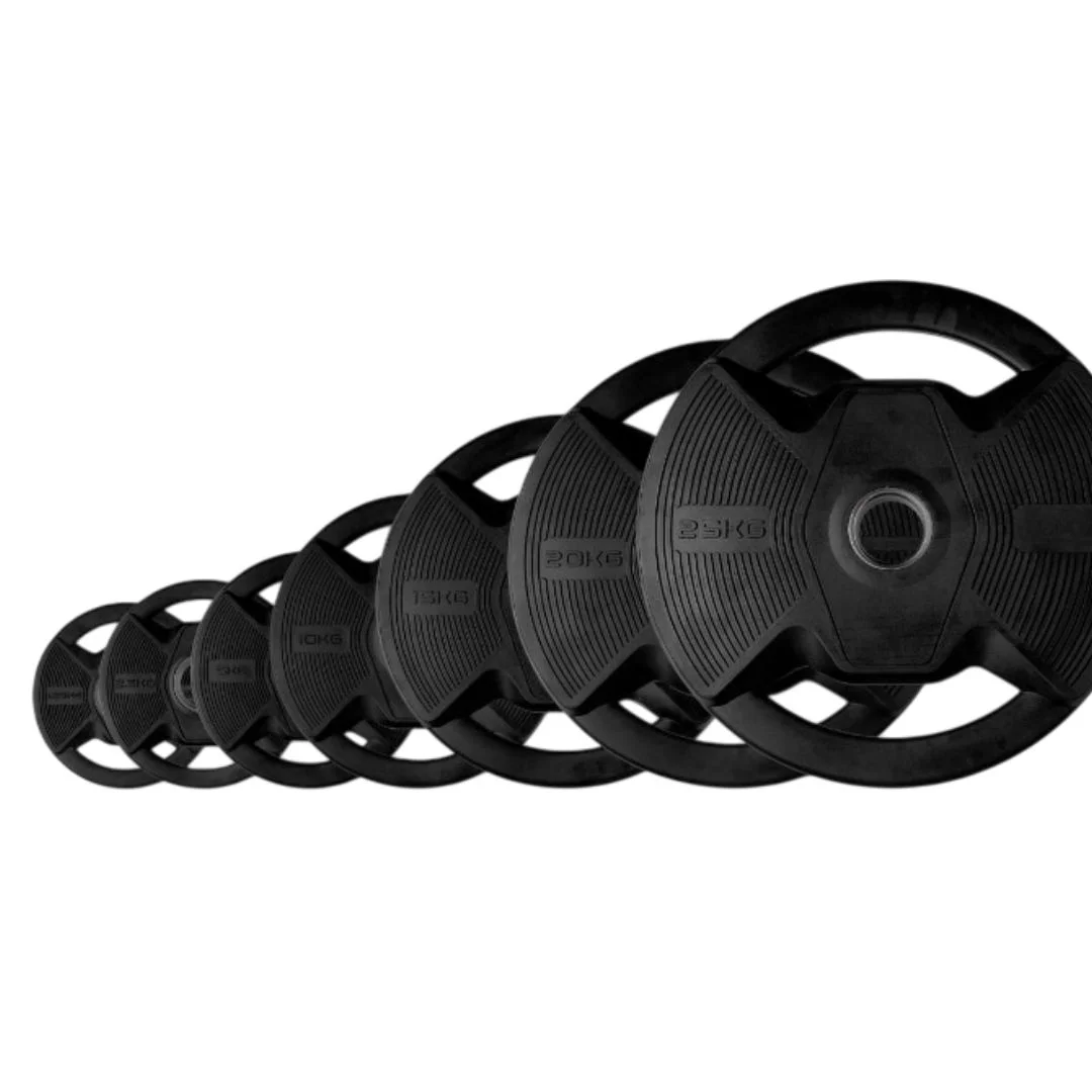 - Disco olímpicos con agujero de 50mm, diseñado para barras olímpicas.