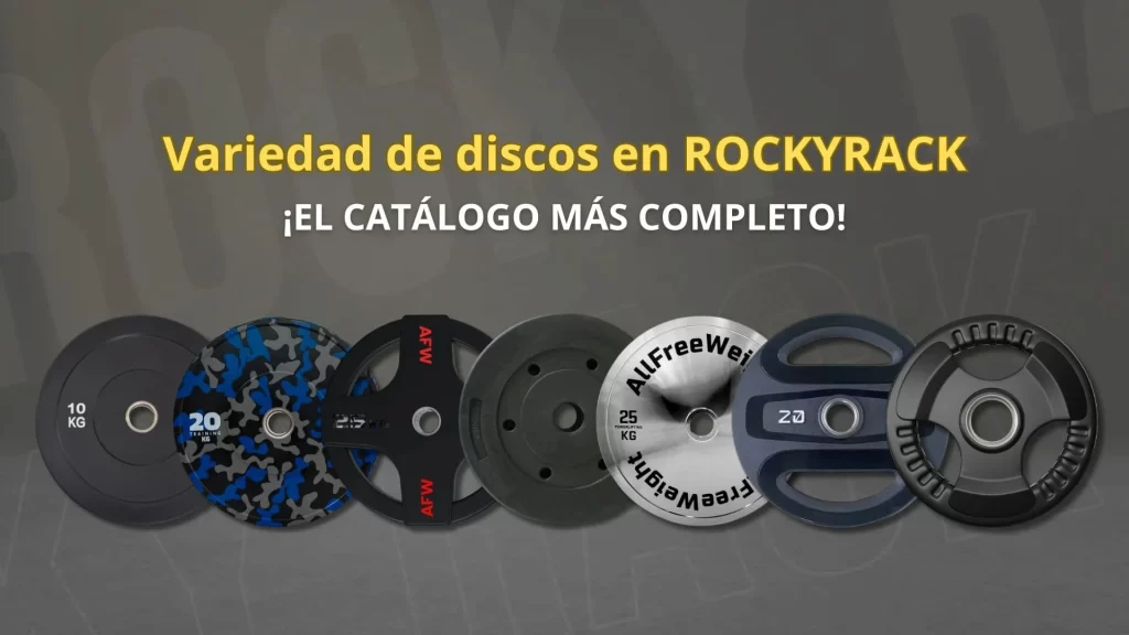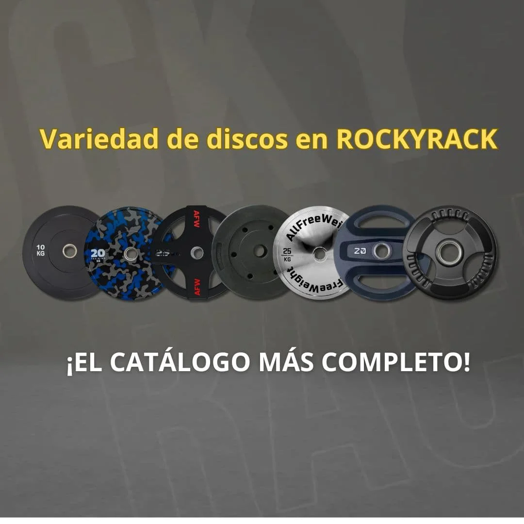 ![Discos olímpicos de Colores [de 5 a 25kg]](https://rockyrack.es/wp-content/uploads/2023/05/comprar-discos-olimpicos-bumper-de-colores-calibrados-profesional-300x300.webp)