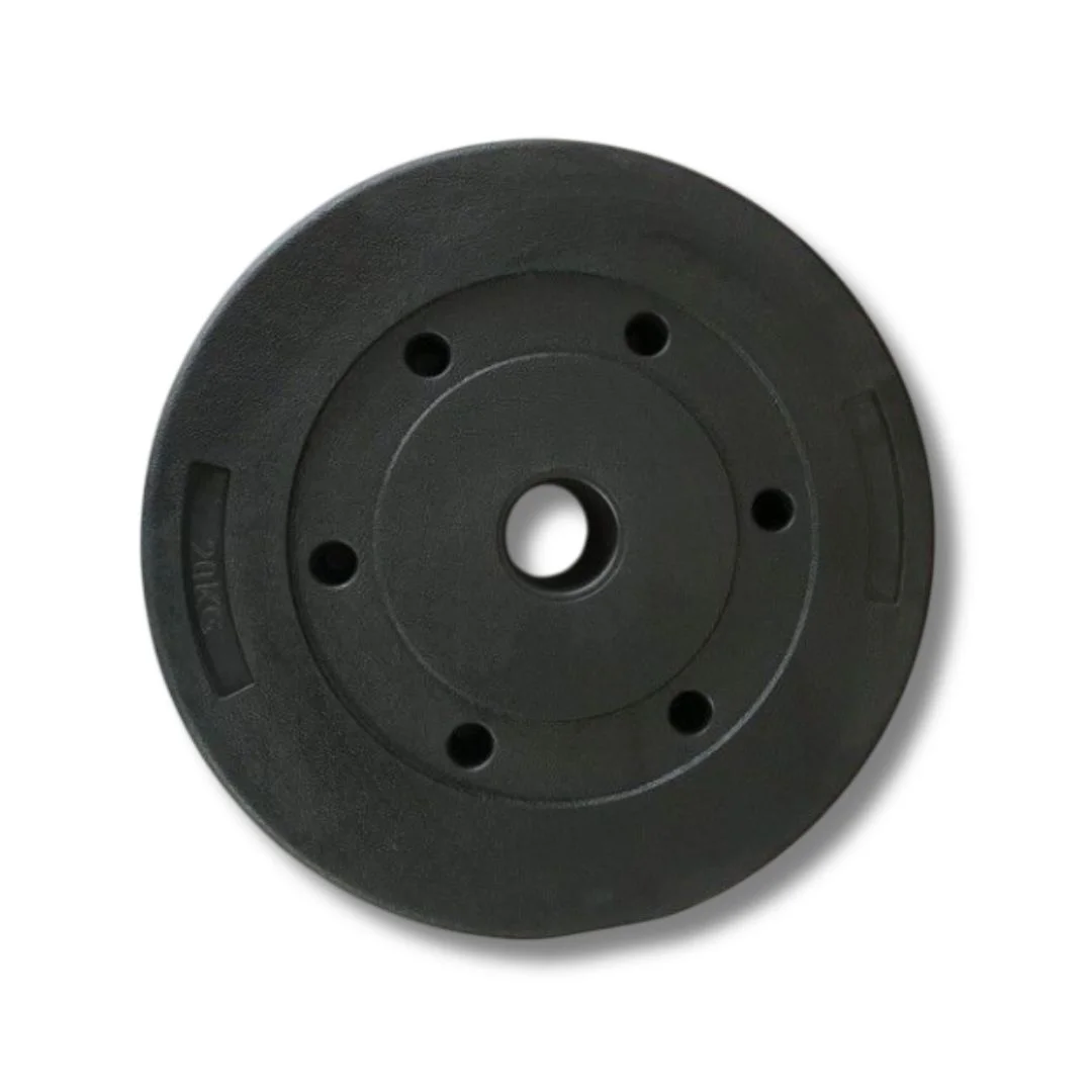 - Set de 100kg incluye 2 discos de 5kg + 2 discos de 10kg + 2 discos de 15kg + 2 discos de 20kg.