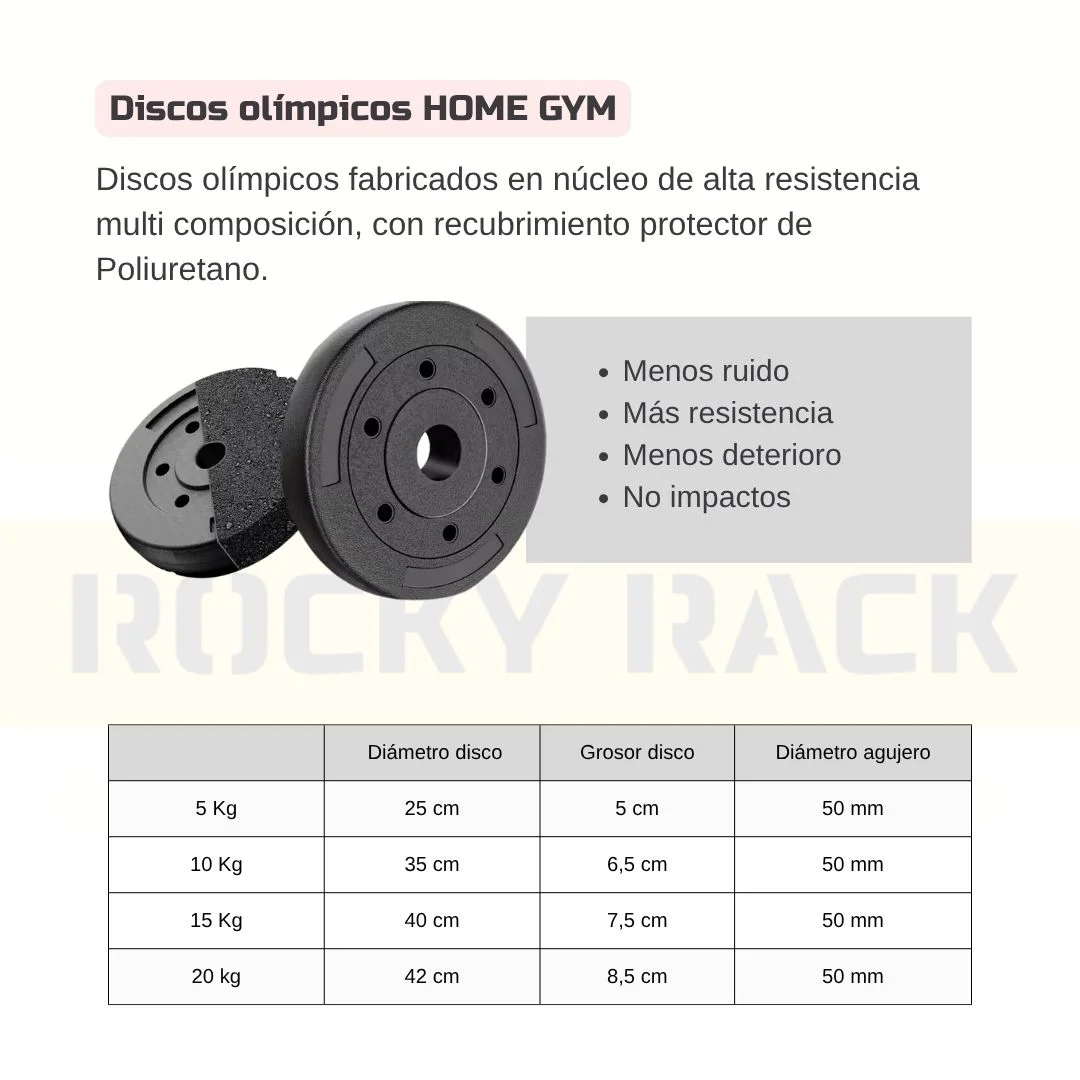 ![Discos olímpicos 50mm HOME GYM [de 1,25 a 20kg] - Imagen 4](https://rockyrack.es/wp-content/uploads/2023/05/Copia-de-Detalles-falso-bumper-discos-pvc.webp)