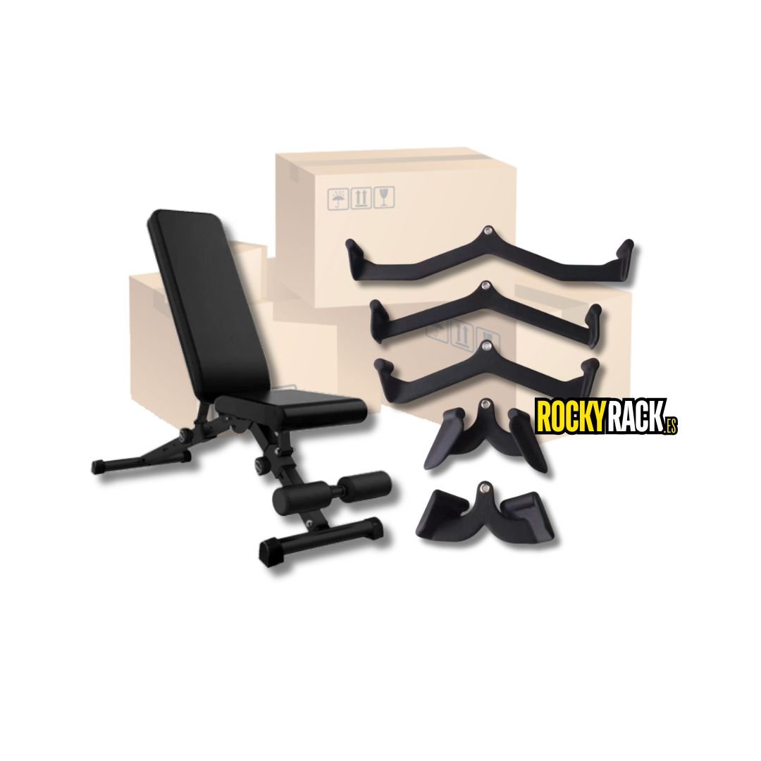 - 1 unidad de banco plegable en color negro: https://rockyrack.es/banco-de-posiciones-para-gym-abs/
