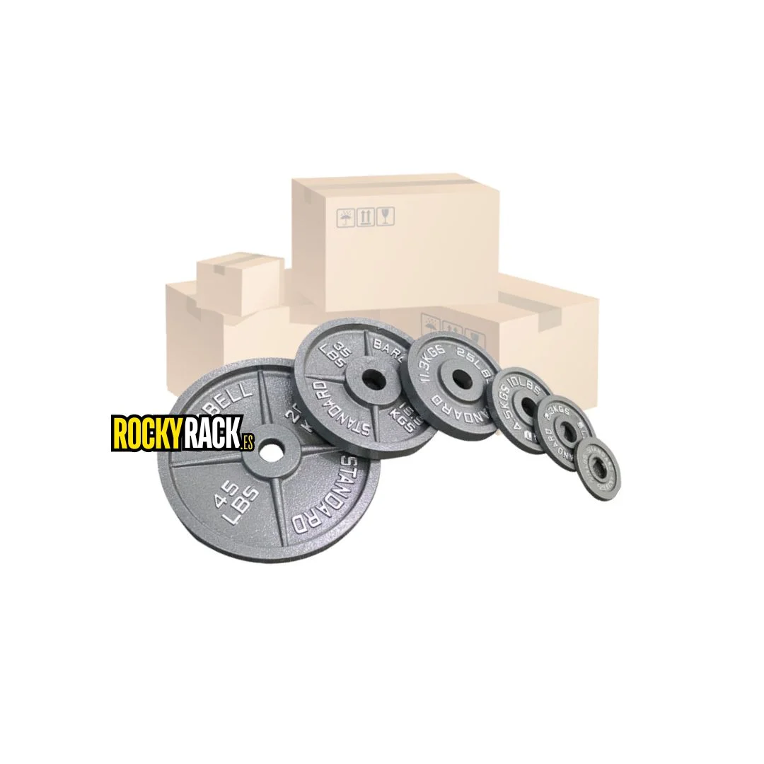 - Lote de discos olímpicos (50mm) Cast iron color gris: https://rockyrack.es/440401-discos-olimpicos-metal/