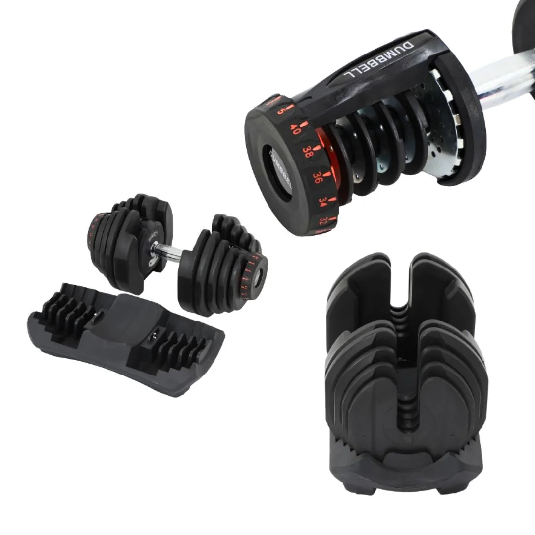 - Juego de 2 mancuernas ajustables de 4 a 41 kg