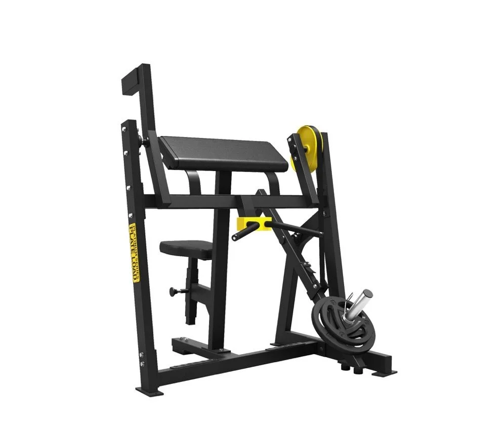 - Se trata de una alternativa perfeccionada del clásico curl de bíceps con barra o mancuernas, pero con la ventaja de utilizar una carga de discos en la propia máquina.