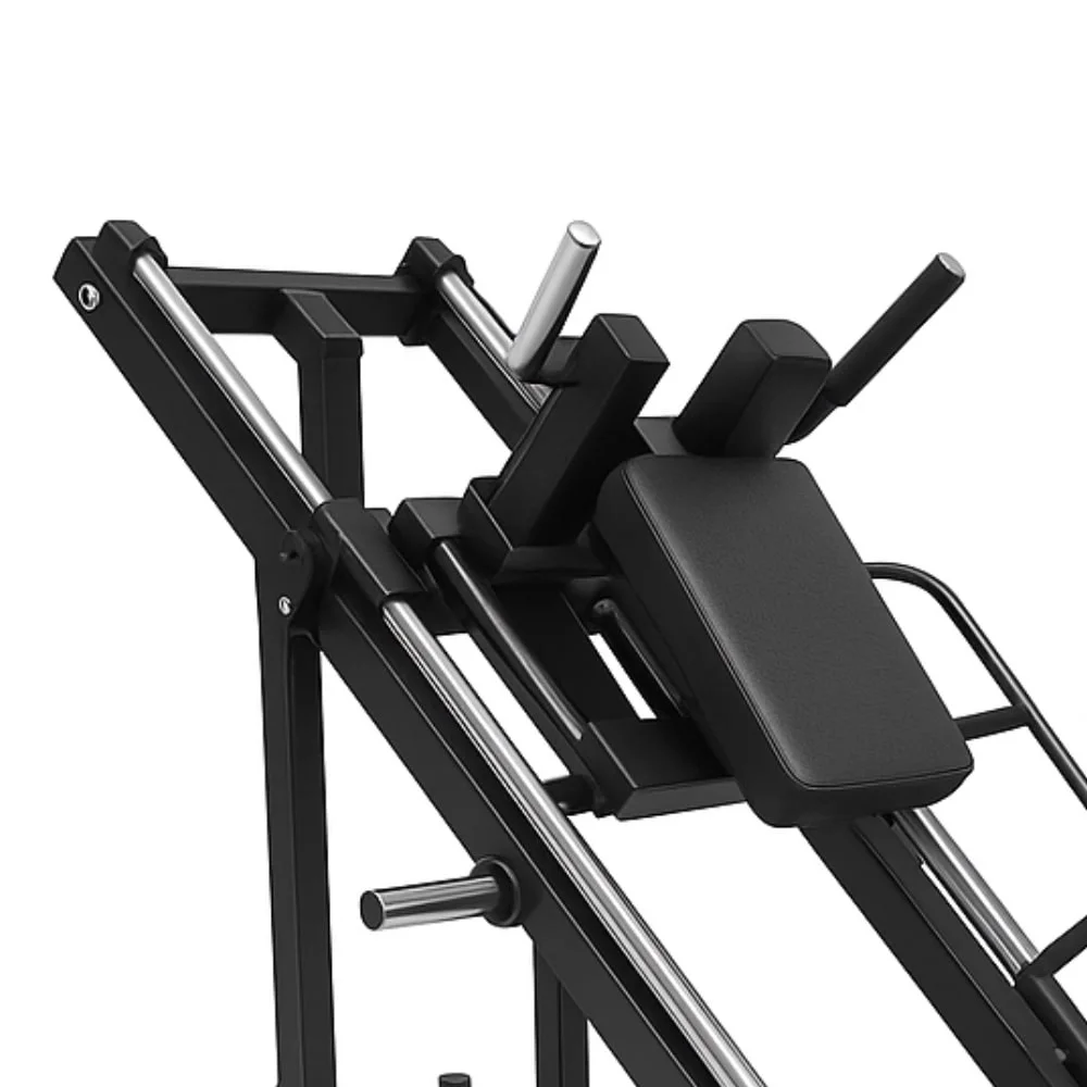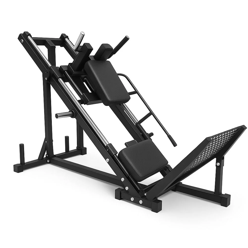 - Diseño 2 en 1: Combina prensa inclinada y hack squat en una sola máquina, ofreciendo máxima versatilidad para entrenar piernas.