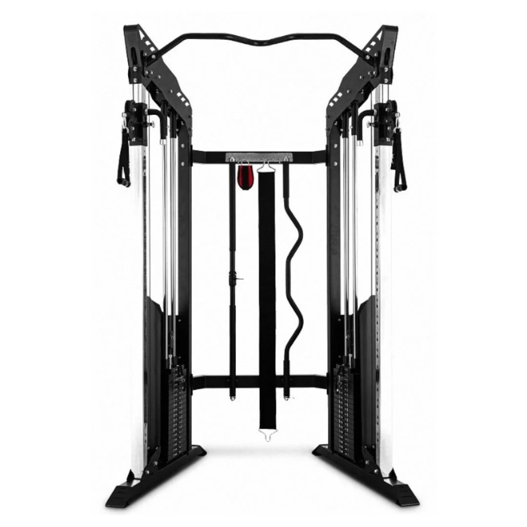 - Aparato de ejercicio con poleas equipado con todos los accesorios: