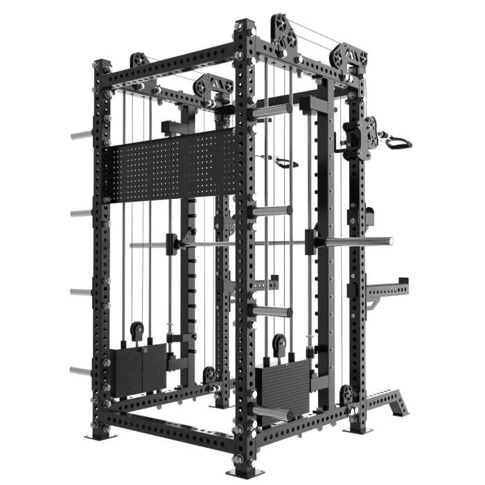 - Gracias a su sistema de poleas ajustables dobles y a su máquina Smith guiada , es posible realizar movimientos como sentadillas, press de pecho, pulldowns laterales, remos, curls de bíceps o extensiones de tríceps con precisión y seguridad.
