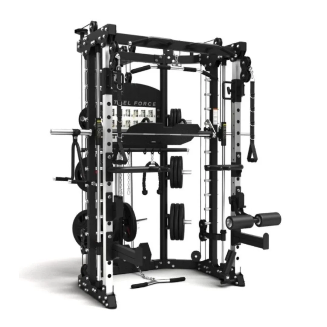 - La solución integral (Funcional Trainer, Power Rack, Smith Machine Profesional, estación Chin Up, prensa de piernas, Accesorios y almacenamiento)