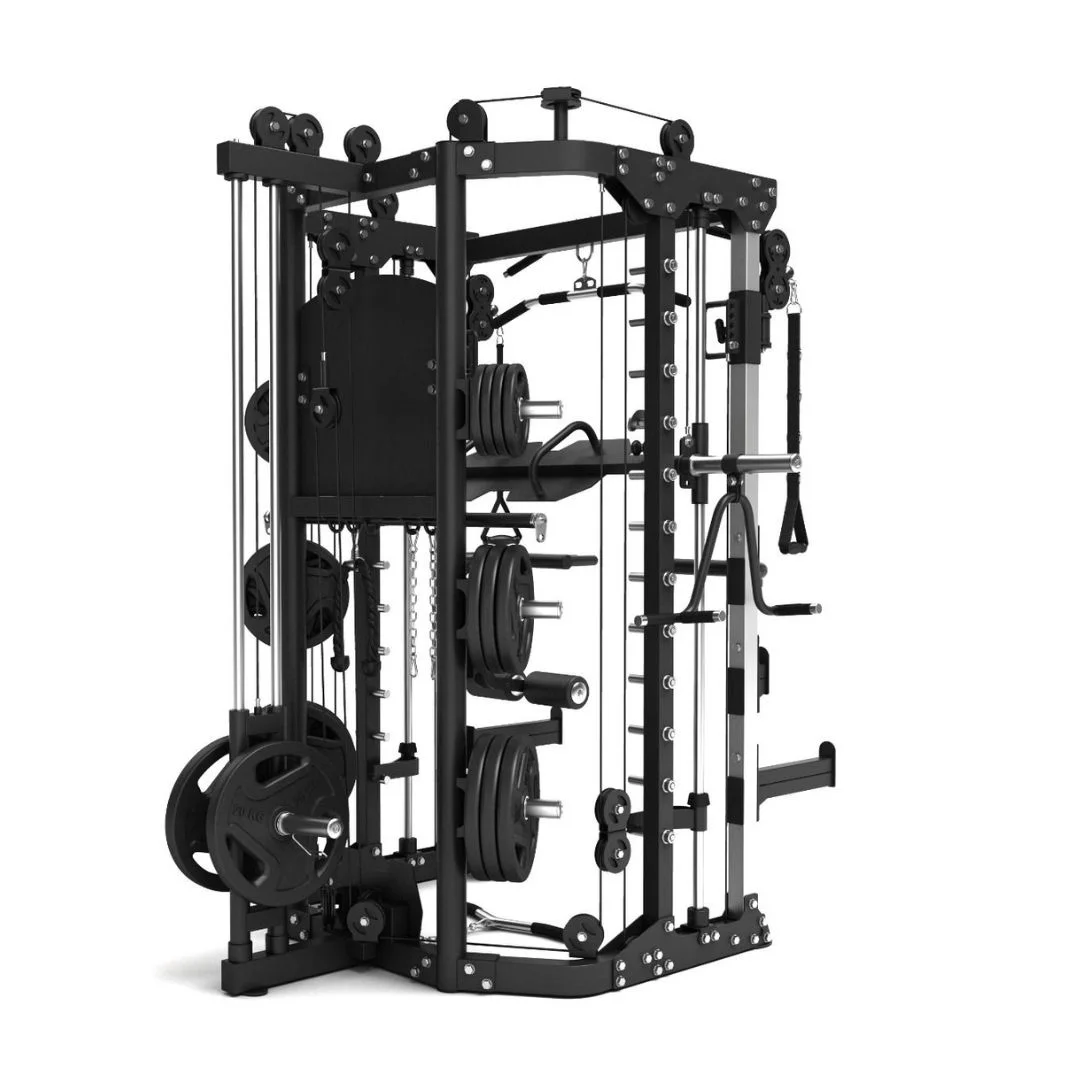 - La solución integral (Funcional Trainer, Power Rack, Smith Machine Profesional, estación Chin Up, prensa de piernas, Accesorios y almacenamiento)
