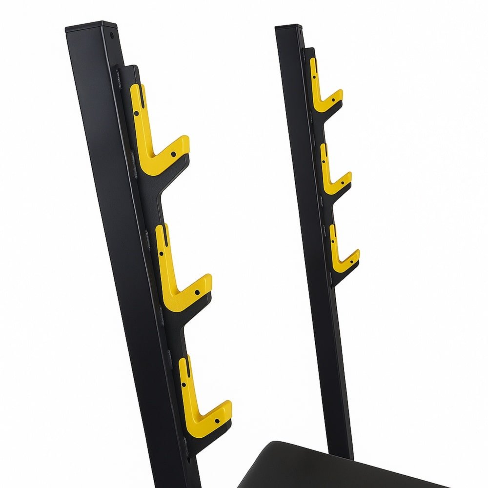 - Ideal para entrenamientos de pecho, hombros y brazos, permitiendo trabajar distintos ángulos gracias a su respaldo ajustable en posición plana, inclinada o declinada.