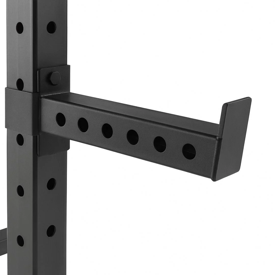 - Gracias a su estructura robusta y los soportes laterales de seguridad (spotters) proporciona estabilidad a pesar de no estar anclada a la pared.