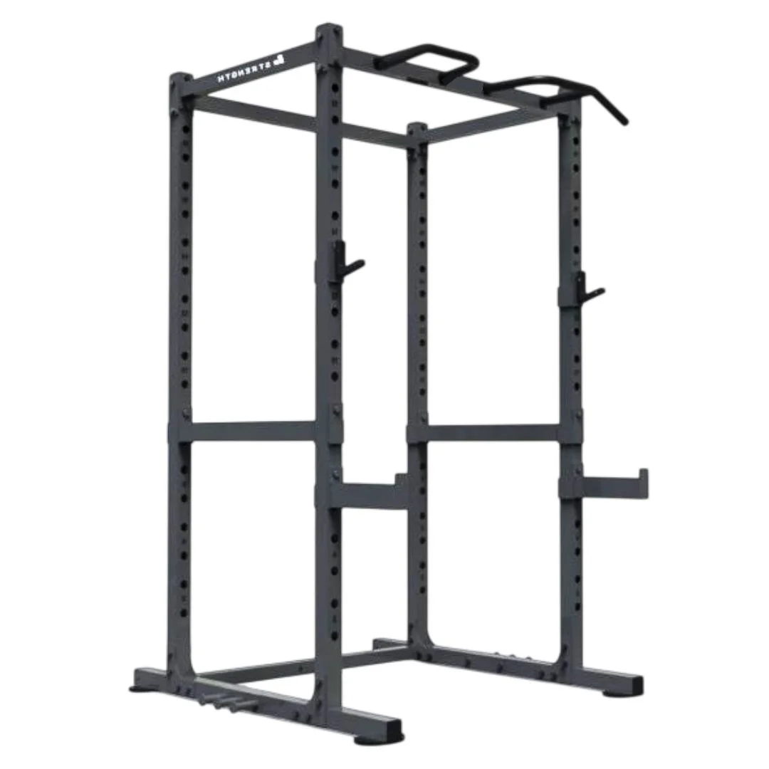 Estupendo Power cage con Spotter arms incorporados que te permiten habilitar 2 zonas de trabajo (Zona interna del rack y zona frontal con los spotter arms).