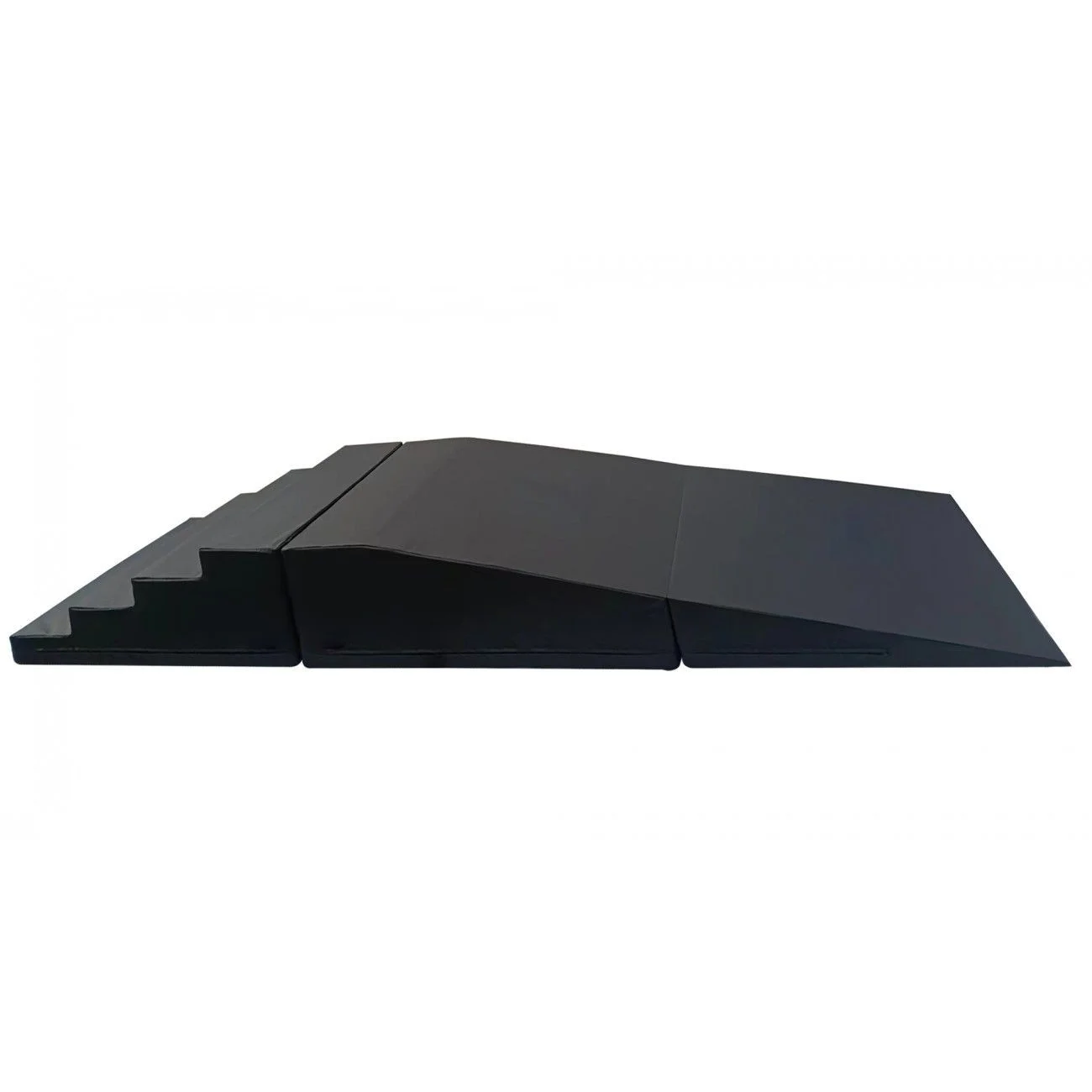 - Este diseño incluye una rampa de 2,1 metros y un escalón de cuatro niveles de 1,2 metros, unidos de forma segura con velcro de 3 pulgadas.