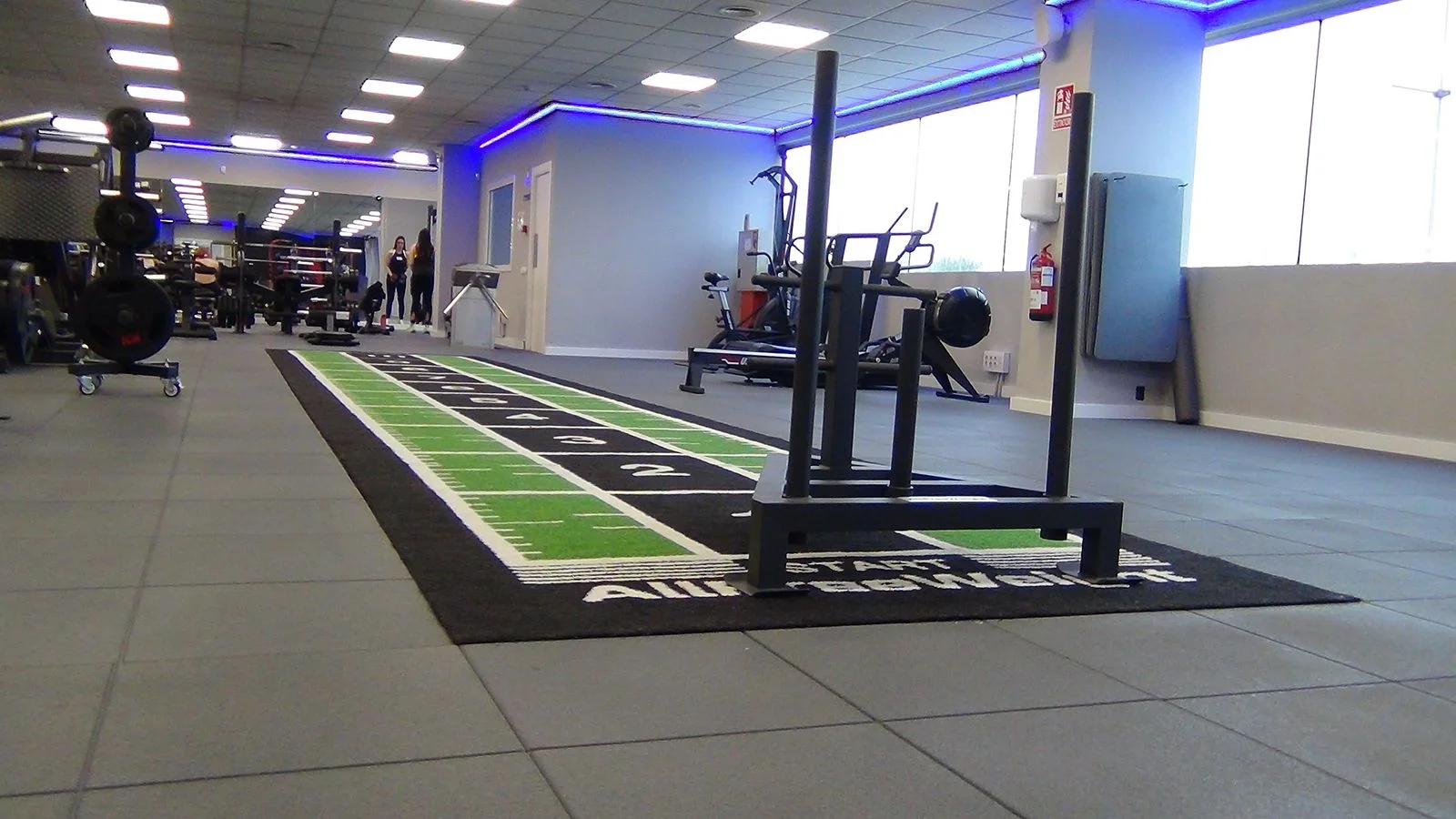- Cuenta con un carril de césped que incluye marcas para facilitar la medición durante la actividad.