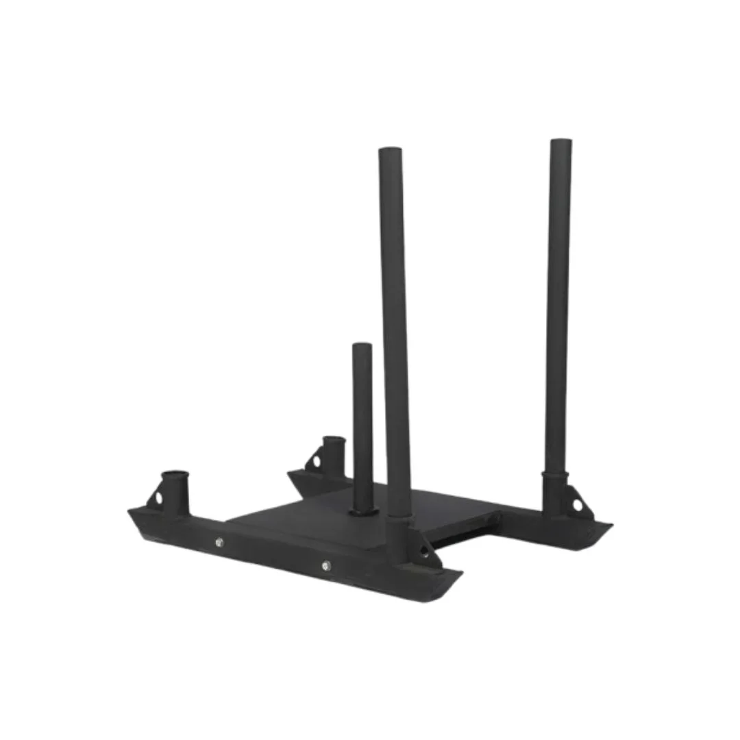 - La zona de arrastre te permite utilizar el trineo para ejercicios de empujar y tirar, mientras que el poste de carga te permite adaptar el peso al nivel del usuario.